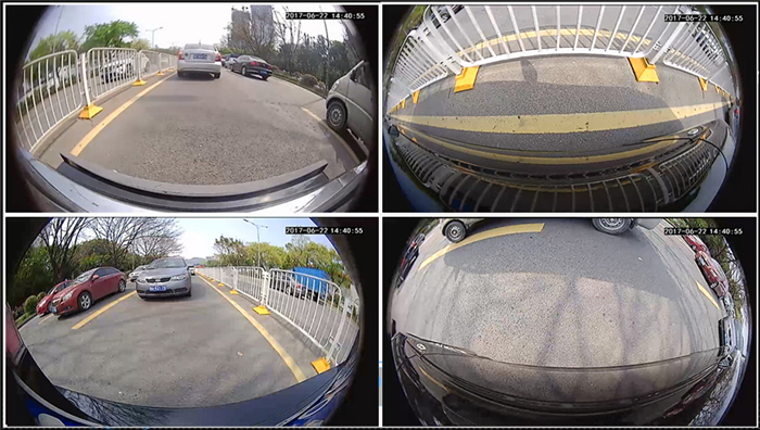 道可視360°全景還是一款360°全景行車記錄儀,行車過程中,通過安裝在車身前后左右的四路超大廣角攝像頭,輕松覆蓋車身四周環境,在系統后臺自動同步循環記錄。