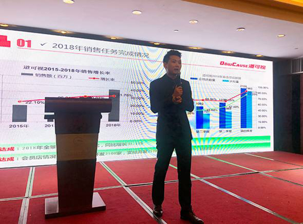 隨后深圳道可視科技有限公司銷售總監邢偉發表了《道可視2018年度市場總結及新年計劃》主題演講,他表示2018年道可視銷售增長率同比增長31.11%,會員店數量開發2128家,整體表現還是非常不錯。