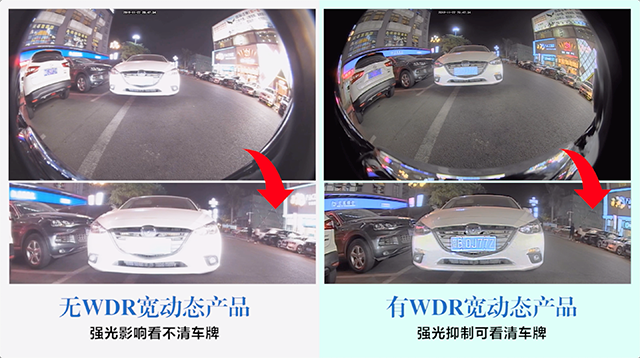 經過十多年的技術發展,如今的360°全景產品白天拍攝其實都能達到一個不錯的水準,然而在一些光線不足或者強光的情況下,卻很容易出現拍不清,甚至無法看清車牌號,難道說到了夜間及強光的情況下360°全景就束手無策了?道可視顯然不這么覺得。