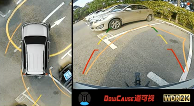 在側邊停車或倒車入庫時,道可視360°全景行車輔助系統通過“倒車影像”+“精準輔助線”的方式,精準計算出行車軌跡,顯示車輛泊車時車身所經過的位置,輔助駕駛員準確輕松泊車,避免事故。